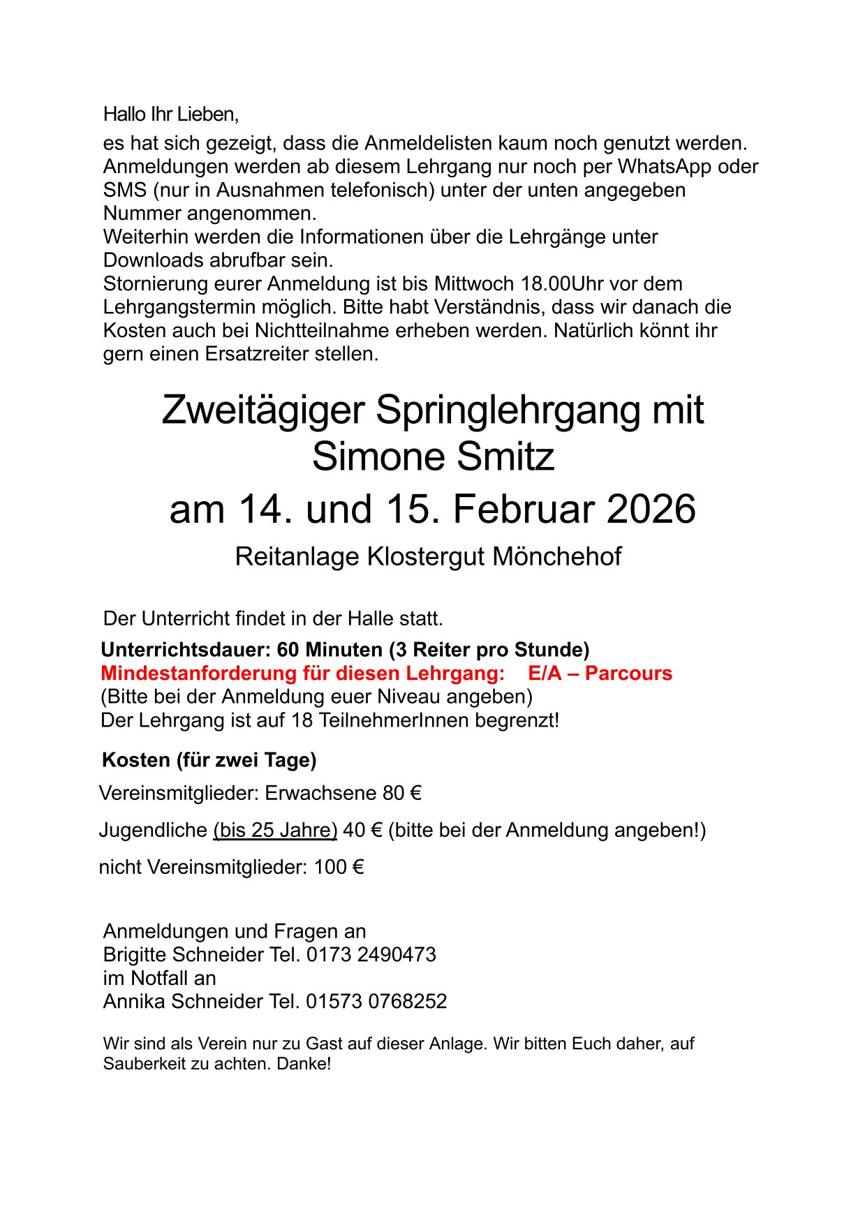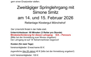 Anmeldung 1. Springlehrgang mit Simone Smitz